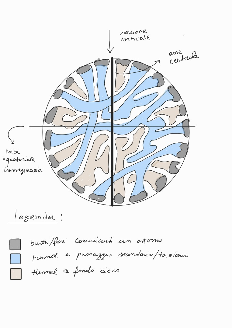 The globe is intentionally perforated — carved with cavities, tunnels, and openings designed to host marine life. Each void becomes a potential refuge for fish, octopus, and invertebrates. The internal geometry was studied in relation to Mediterranean species, considering dimensions, swimming behaviour, and ecological function.